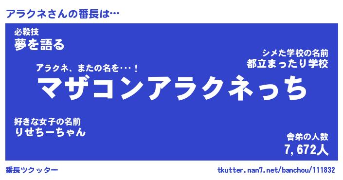 | 恥ずかしいあだ名 | 『プリティーアラクネ』『アラっちょ』 |
