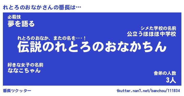 | 伝説のあだ名 | 『伝説のスナイパーれとろのおなか』 |