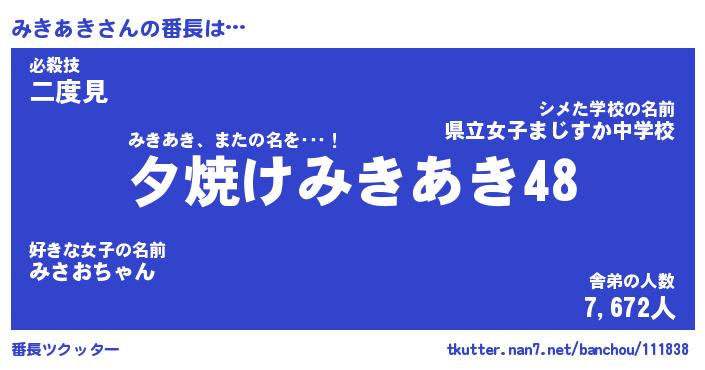 | 意味不明あだ名 | 『ペロリンみきあき』『永久保存みきあき』 |