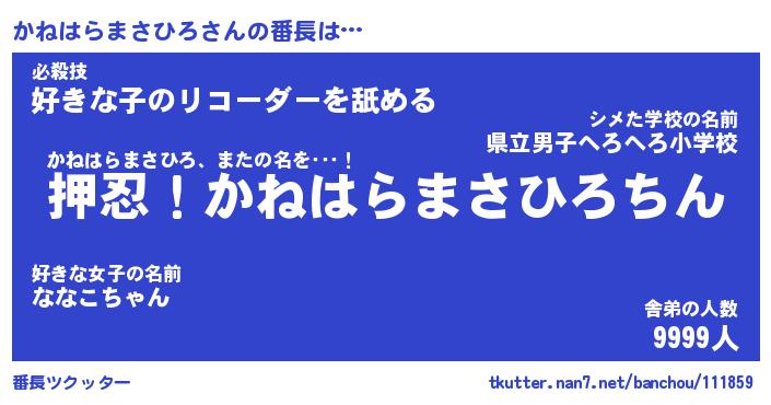 | 伝説のあだ名 | 『封印されし竜騎士かねはらまさひろ』 |