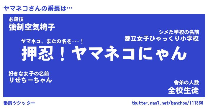 | ヒーロー風カッコイイあだ名 | 『スーパーヤマネコ』『暗黒騎士ヤマ』 |
