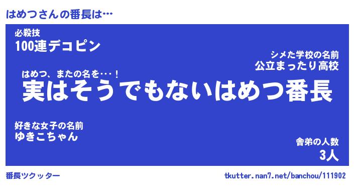 | ヒーロー風カッコイイあだ名 | 『スーパーハメツ』『ウルトラはめつマン』 |