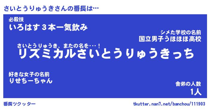 | 肩書あだ名 | 『さいとうりゅうき御曹司』 |