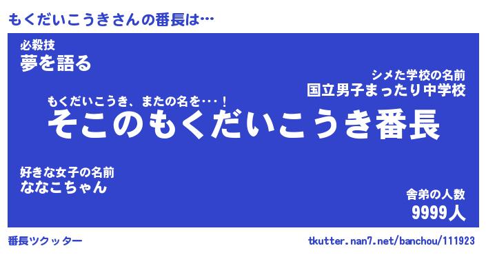 | ピコ太郎風あだ名 | 『モコ次郎』『ピモ太郎』『モク八郎』 |