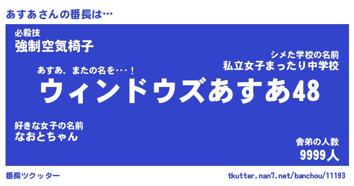 | ヘコむあだ名 | 『あすにゅー』『豆乳』『あす太郎』 |