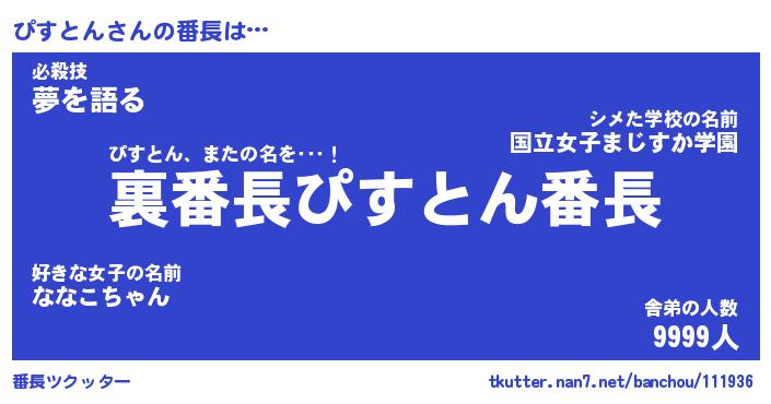 | 欧米人風あだ名 | 『マイケルぴすとん』『ウサインぴすとん』 |