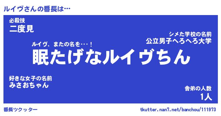| 2回繰り返すあだ名 | 『ルイルイ』『ルルイイ』『いそいそ』 |