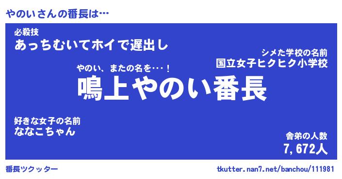 | 2回繰り返すあだ名 | 『やのやの』『ややのの』『ごしごし』 |