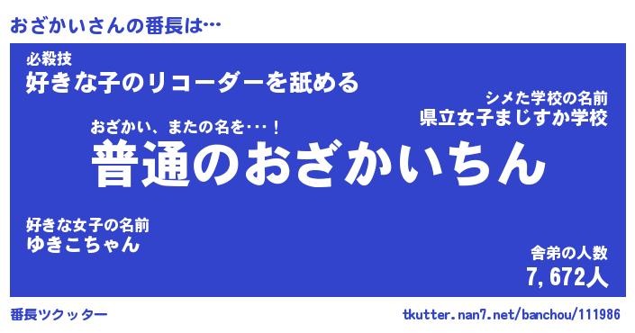 | ヘコむあだ名 | 『おざにー』『なまこ酢』『おざ太郎』 |