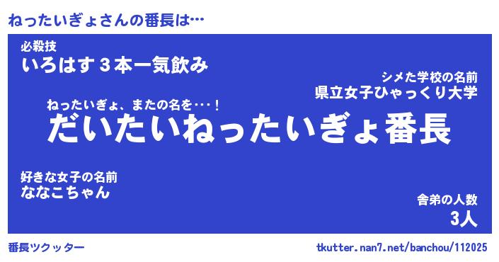 | ヒーロー風カッコイイあだ名 | 『スーパーネッタイギョ』『魔戒騎士ネッ』 |