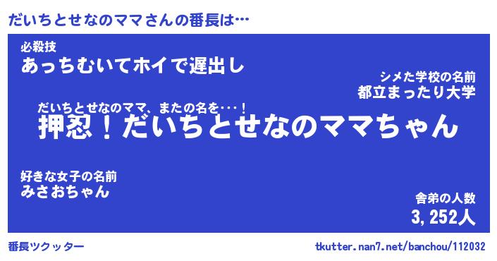| ヒーロー風カッコイイあだ名 | 『スーパーダイチトセナノママ』 |