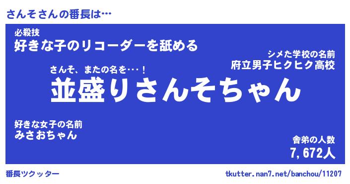 | ピコ太郎風あだ名 | 『サコ一郎』『ピサ二郎』『サン四郎』 |