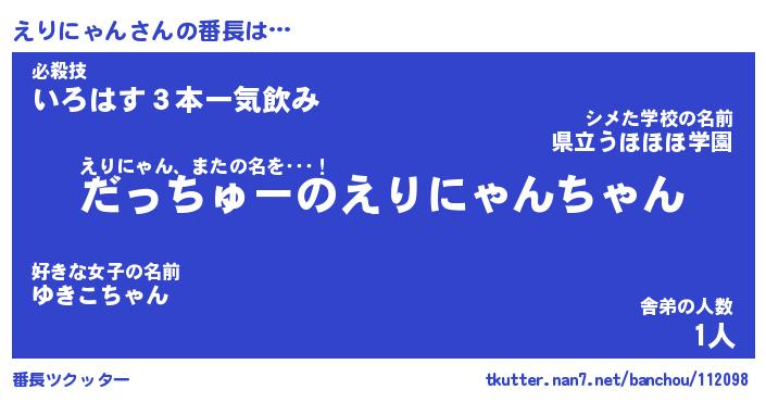 | ヘコむあだ名 | 『えりっふぃ~』『なまこ酢』 |