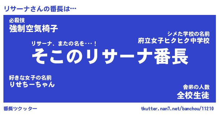 | 肩書あだ名 | 『リサーナ社長』『リサーナ総理大臣』 |