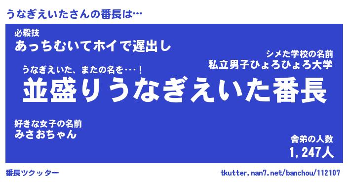 | 男性向けラノベタイトル風あだ名 | 『うなぎえいたの憂鬱』 |