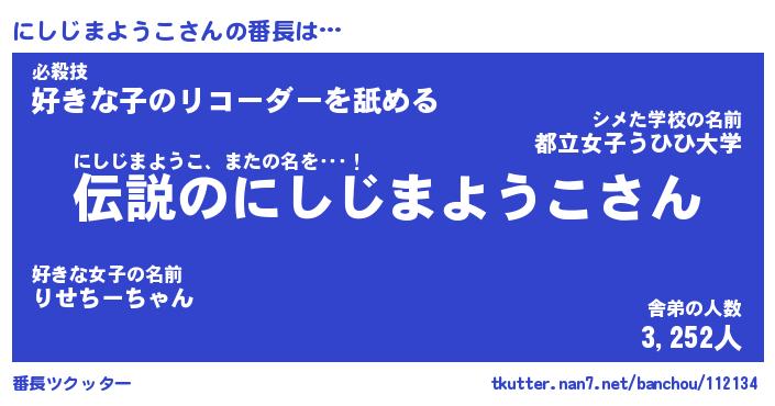 | 2回繰り返すあだ名 | 『にしにし』『ににしし』『ごみごみ』 |