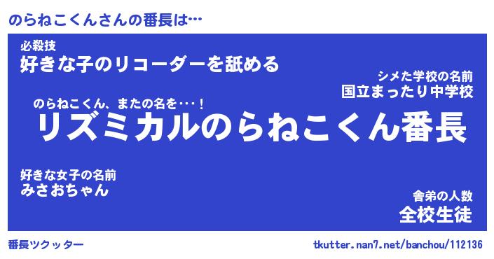 | ヘコむあだ名 | 『のらもー』『酢こんぶ』『のらっ子』 |
