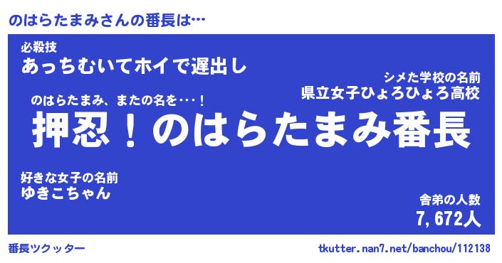 | ヒーロー風カッコイイあだ名 | 『スーパーノハラタマミ』『炎刃騎士ノハ』 |