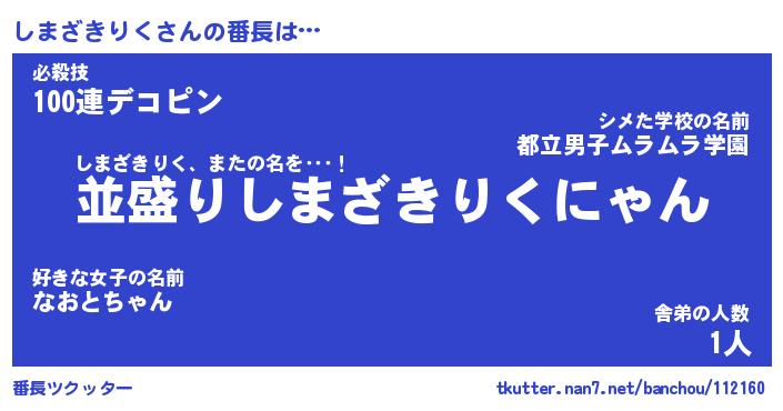 | ヘコむあだ名 | 『しまにゅー』『つくし』『しまっぺ』 |