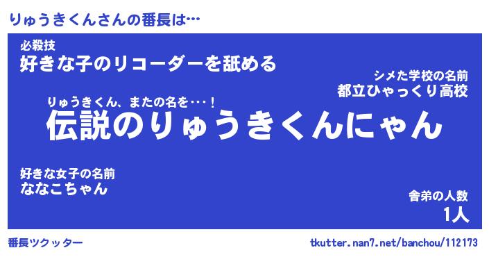 | ヒーロー風カッコイイあだ名 | 『スーパーリュウキクン』『幻影騎士リュ』 |