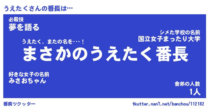 | 肩書あだ名 | 『うえたく社長令嬢』『うえたく総理大臣』 |