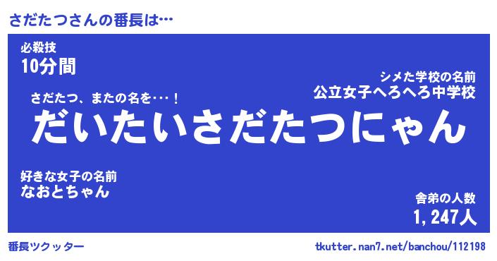 | 意味不明あだ名 | 『ペロリンさだたつ』『永久保存さだたつ』 |