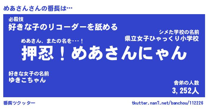 | 2回繰り返すあだ名 | 『めあめあ』『めめああ』『ぬぷぬぷ』 |