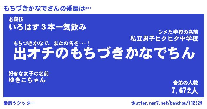 | ヘコむあだ名 | 『もちにー』『なまこ酢』『もちお』 |