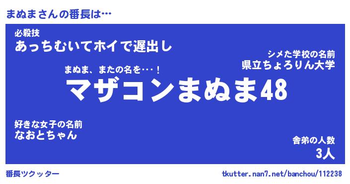| 意味不明あだ名 | 『ペロリンまぬま』『まぬまフォーエバー』 |