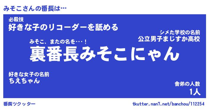 | 意味不明あだ名 | 『ペロリンみそこ』『みそこフォーエバー』 |