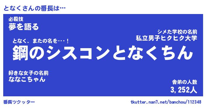 | ヘコむあだ名 | 『となもー』『豆乳』『となお』 |