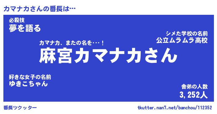 | ファンタジー風あだ名 | 『カマフェル』『エターナルカマナカー』 |