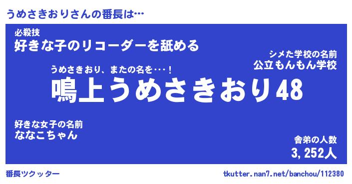 | ポケモン風あだ名 | 『ウメチュウ』『ウメサダネ』 |