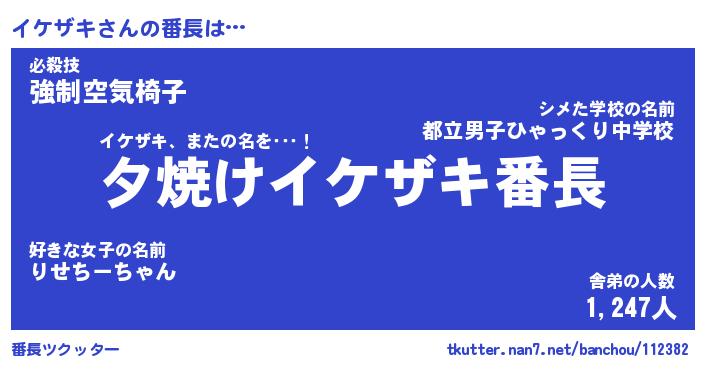 | 意味不明あだ名 | 『ペロリンイケザキ』『永久保存イケザキ』 |