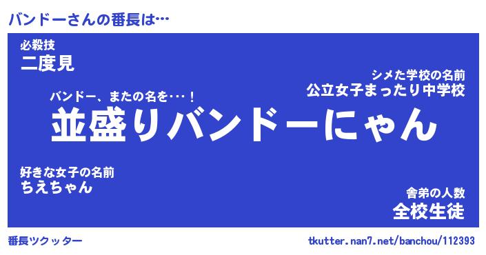 | ポケモン風あだ名 | 『バンチュウ』『バンドダネ』 |