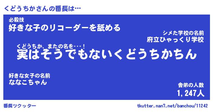 | ファンタジー風あだ名 | 『クドフェル』『エターナルクドウチカー』 |