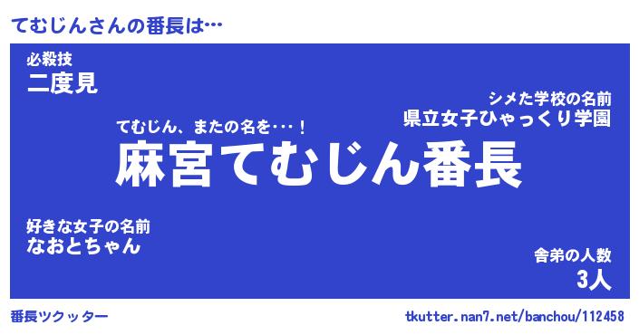 | 意味不明あだ名 | 『ペロリンてむじん』『永久保存てむじん』 |