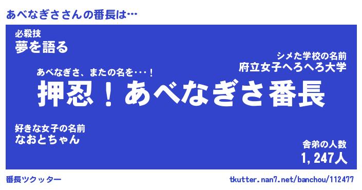 | 肩書あだ名 | 『あべなぎさ御曹司』『あべなぎさ班長』 |