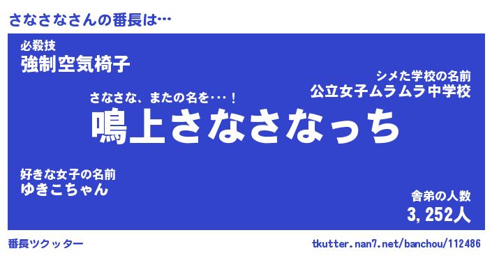 | 伝説のあだ名 | 『封印されしスナイパーさなさな』 |