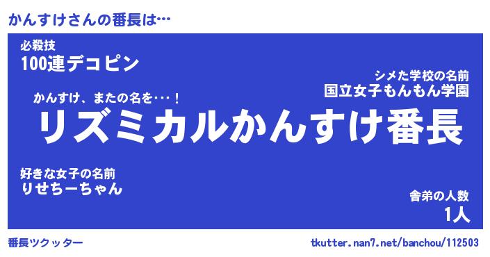 | 意味不明あだ名 | 『ペロリンかんすけ』『永久保存かんすけ』 |