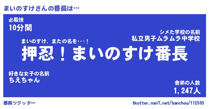 | 肩書あだ名 | 『まいのすけ店長』『まいのすけ国家主席』 |