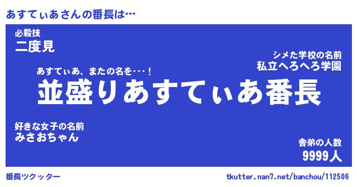 | 肩書あだ名 | 『あすてぃあ店長』『あすてぃあ総理大臣』 |