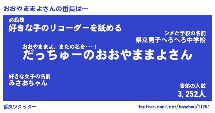 | 伝説のあだ名 | 『伝説のスナイパーおおやままよ』 |