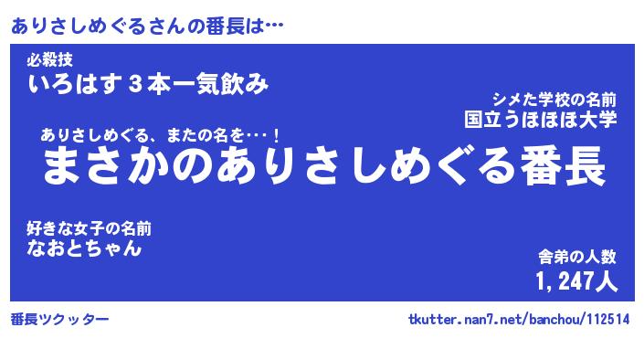 | 男性向けラノベタイトル風あだ名 | 『ありさしめぐるの憂鬱』 |