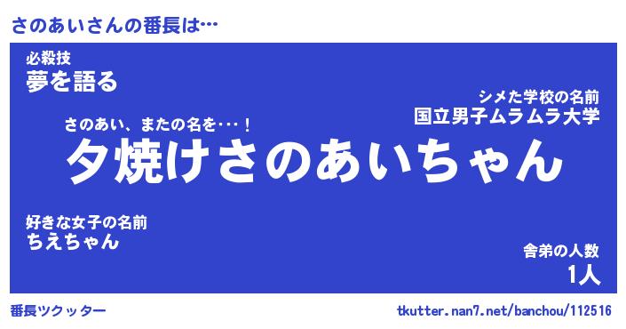 | 欧米人風あだ名 | 『マイケルさのあい』『ウサインさのあい』 |