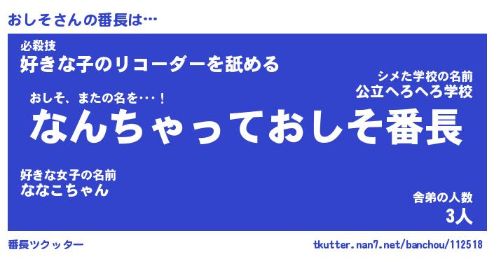 | 伝説のあだ名 | 『伝説のスナイパーおしそ』 |