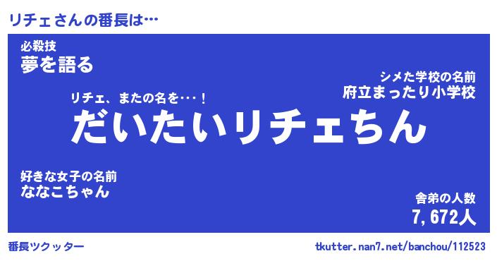 | ポケモン風あだ名 | 『リチチュウ』『リチェダネ』 |