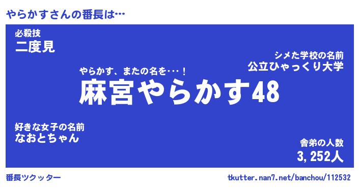 | ヘコむあだ名 | 『やらもー』『豆乳』『やら太郎』 |