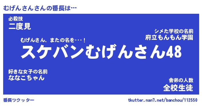 | ヒーロー風カッコイイあだ名 | 『スーパームゲンサン』『炎刃騎士ムゲ』 |
