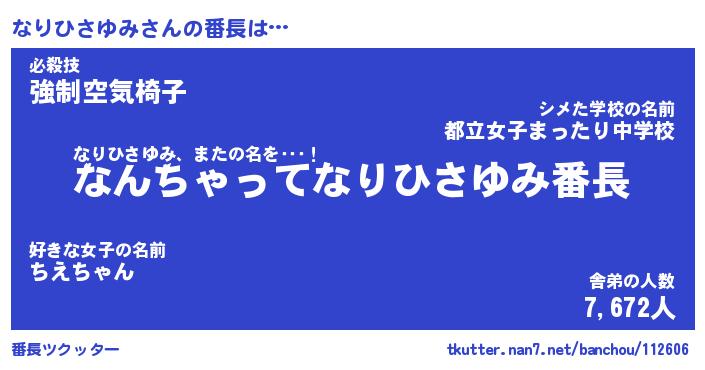 | 伝説のあだ名 | 『伝説のスナイパーなりひさゆみ』 |